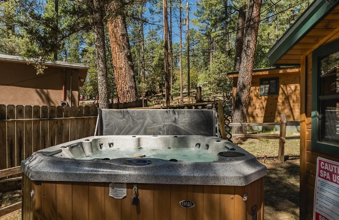 The 1-bedroom Snuggle Inn: Cozy Studio Cabin In Upper Canyon With A Hot Tub! Ruidoso is located around 25 minutes' walk from the American Noisy Water Winery and allows guests to enjoy snow skiing, horseback riding, and mini golf.